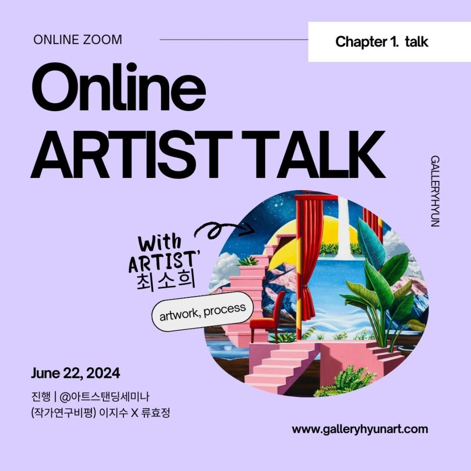 A: 제가 작가가 되기로 결심한 건 정말 어렸을 적부터 입니다. 초등학교 때부터 꾸준히 미술학원을 다니고 대회도 다니고 하면서 자연스럽게 예고 진학을 하고 대학을 가면서 자연스럽게 화가의 꿈을 키웠습니다. 대학에 와서는 많은 생각들이 들면서 작가 말고 다른 직업도 꿈꾼 적이 있었지만 결국에는 그림을 그리고 있습니다.